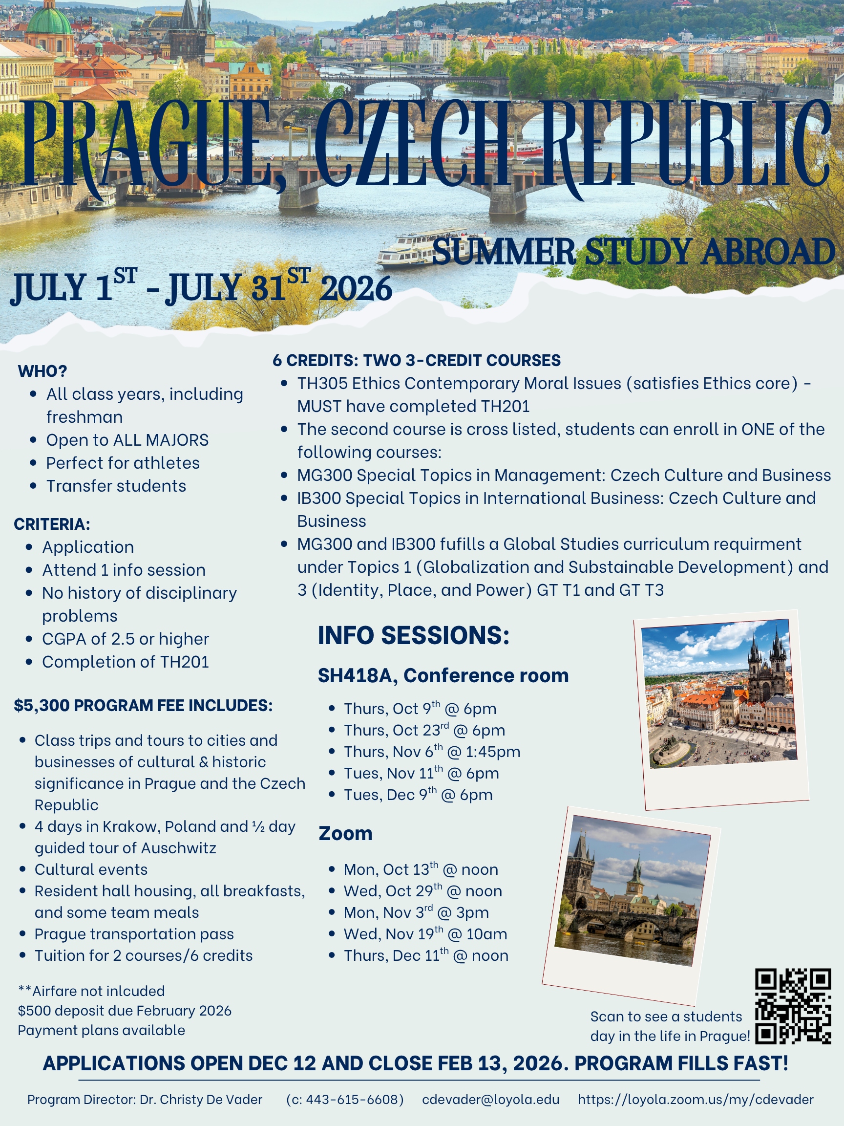 Prague, Czechia | Thurday, October 9 | 6 PM | SH418a |